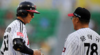 '2008 삼성 PAVV 프로야구' LG 트윈스와 두산 베어스의 경기가 30일 서울 잠실구장에서 벌어졌다. 4회말 1사 주자 1,3루 LG 이대형이 우중간 1타점 적시타를 날린 후 1루에서 윤덕규 코치와 얘기를 나누고 있다./잠실=민경훈 기자 rumi@osen.co.kr [Copyright ⓒ 한국 최고의 스포츠 엔터테인먼트 전문...