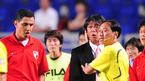 '삼성 하우젠 K-리그 2008' 수원 삼성과 부산 아이파크의 경기가 31일 수원월드컵경기장에서 벌어져 후반 종료 직전 터진 수원 김대의의 동점골로 1-1로 승부를 가리지 못했다. 후반 부산 문전에서 파울이 선언되자 황선홍 부산 감독이 대기심에게 강하게 어필하고 있다./수원=손용호 기자spjj@osen.co.kr...