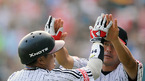 '2008 삼성 PAVV 프로야구' LG 트윈스와 두산 베어스의 경기가 31일 서울 잠실구장에서 벌어졌다. 3회말 1사 주자없는 상황에서 김상현이 우월솔로홈런을 날린 후 3루에서 노찬엽 코치와 하이파이브를 하고 있다./잠실=민경훈 기자 rumi@osen.co.kr [Copyright ⓒ 한국 최고의 스포츠 엔터테인먼트 전문 미디어...