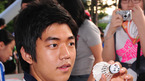 '삼성 하우젠 K-리그 2008' 수원 삼성과 부산 아이파크의 경기가 31일 수원월드컵경기장에서 벌어졌다. 경기에 앞서 베이징 올림픽 배드민턴 경기서 메달을 딴 이용대 이효정 이경원이 경기장을 방문 사인회를 가졌다. 이용대가 팬이 선물한 셔틀콕을 들어보이고 있다./수원=손용호 기자spjj@osen.co.kr [Copyright ⓒ 한국...