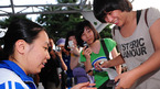 '삼성 하우젠 K-리그 2008' 수원 삼성과 부산 아이파크의 경기가 31일 수원월드컵경기장에서 벌어졌다. 경기에 앞서 베이징 올림픽 배드민턴 경기서 메달을 딴 삼성전기 소속의 이용대 이효정 이경원이 사인회를 가졌다. 이경원에게 한 팬이 핸드폰에 사인을 요구하고 있다./수원=손용호 기자spjj@osen.co.kr [Copyright ⓒ...
