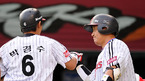 '2008 삼성 PAVV 프로야구' LG 트윈스와 두산 베어스의 경기가 31일 서울 잠실구장에서 벌어졌다. 3회말 1사 주자1루 상황에서 LG 박경수가 좌월투런홈런을 날린 후 홈에서 2회말에 투런홈런을 날렸던 조인성과 하이파이브를 하고 있다./잠실=민경훈 기자 rumi@osen.co.kr [Copyright ⓒ 한국 최고의 스포츠...
