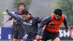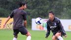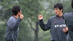 2010 남아공월드컵 아시아지역 최종예선 1차전인 남북한전을 앞두고 허정무 감독이 이끄는 대표팀이 1일 낮 파주 NFC로 소집되었다. 조재진과 최효진이 비를 맞으며 훈련을 하고 있다./파주=윤민호 기자 ymh@osen.co.kr [Copyright ⓒ 한국 최고의 스포츠 엔터테인먼트 전문 미디어 OSEN(www.osen.co.kr) 무단전재 및...