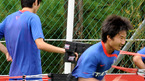 축구대표팀이 오는 10일 중국 상하이에서 열리는 2010 남아공월드컵 아시아지역 최종예선 1차전인 북한전을 앞두고 2일 오전 파주 NFC에서 소집 이틀째 훈련을 가졌다. 김남일이 고무밴드를 이용한 근력강화 훈련중 중심을 잃고 뒤로 넘어지자 김동진이 웃음보를 터뜨리고 있다./파주=김영민 기자ajyoung@osen.co.kr [Copyright ⓒ 한국...