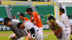 '2008 삼성 PAVV 프로야구' 두산 베어스와 한화 이글스의 경기가 2일 서울 잠실구장에서 벌어졌다. 경기 전 KBO 하일성 총장이 두산과 한화의 올림픽 대표팀 선수들 및 김광수 코치와 김경문 감독에게 꽃다발 전달식을 가졌고 단체 포토타임을 갖고 있다./잠실=민경훈 기자 rumi@osen.co.kr [Copyright ⓒ...