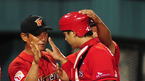 2008 삼성 PAVV 프로야구' LG 트윈스와 SK 와이번스의 경기가 5일 서울 잠실구장에서 벌어졌다. 이 날 경기에서 SK는 연장 11회 터진 SK 정상호의 역전 결승타에 힘입어 4-3으로 짜릿한 재역전승에 성공했다. 경기를 마치고 SK 김성근 감독과 정상호가 하이파이브를 하고 있다./잠실=민경훈 기자 rumi@osen.co.kr...