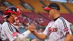 2008 삼성 PAVV 프로야구' LG 트윈스와 SK 와이번스의 경기가 5일 서울 잠실구장에서 벌어졌다.1회초 SK의 파상공세를 LG 선발 옥스프링이 실점없이 잘 막아낸후 LG 조인성 포수와 덕아웃 앞에서 하이파이브를 하고 있다. /잠실=민경훈 기자 rumi@osen.co.kr [Copyright ⓒ 한국 최고의 스포츠 엔터테인먼트...