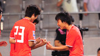 축구대표팀이 오느 10일 중국 상하이에서 열리는 북한과의 2010 남아공월드컵 아시아지역 최종예선 1차전을 앞두고 5일 서울월드컵경기장에서 요르단을 상대로 친선경기를 가졌다. 전반 5분 이청용의 헤딩 선제골을 프리킥으로 어시스트한 김두현이 달려와 축하하고 있다./상암=김영민 기자ajyoung@osen.co.kr [Copyright ⓒ 한국 최고의...