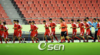 오는 10일 한국과 남아공 월드컵 아시아 최종예선 1차전을 앞둔 북한 대표팀이 7일 경기가 벌어진 홍커우 스타디움에서 비공개로 훈련을 가졌다. 북한은 당초 한국이 사용한 동지대학 구장에서 잇달아 훈련할 예정이었으나 장소를 바꿨다. 북한 선수들이 간단하게 몸을 풀고 있다./상하이=손용호 기자spjj@osen.co.kr [Copyright ⓒ 한국...
