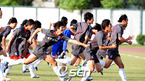 오는 10일 벌어질 북한과 남아공 월드컵 아시아 최종예선 1차전을 앞둔 태극전사들이 8일 상하이 동지대 훈련장에서 강훈련을 소화했다. 순발력을 테스트하는 훈련에서 기성용이 김동진을 쫓아가 태그하고 있다./상하이=손용호 기자spjj@osen.co.kr [Copyright ⓒ 한국 최고의 스포츠 엔터테인먼트 전문 미디어...