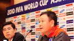 오는 10일 벌어질 남아공 월드컵 아시아 최종예선 북한과의 1차전을 앞두고 한국과 북한의 사령탑 허정무 김정훈 감독이 9일 홍커우 스타디움에서 공식 기자회견을 가졌다. 김정훈 감독이 북한팀의 분위기에 대한 질문에 '사기가 충천해 있고 승점 3점이 더 필요하다'고 얘기하고 있다. /상하이=손용호 기자spjj@osen.co.kr...