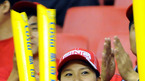 남아공 월드컵 아시아 최종예선 1차전 한국과 북한의 경기가 10일 홍커우 스타디움에서 벌어졌다. 북한응원단 여성이 막대풍선 응원도구를 이용하여 응원을 펼치고 있다./상하이=손용호 기자spjj@osen.co.kr [Copyright ⓒ 한국 최고의 스포츠 엔터테인먼트 전문 미디어 OSEN(www.osen.co.kr) 무단전재 및 재배포 금지]