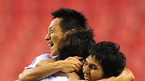 남아공 월드컵 아시아 최종예선 1차전 한국과 북한의 경기가 10일 홍커우 스타디움에서 벌어졌다. 후반 북한 홍영조가 페널티킥으로 선제골을 성공시키자 정대세가 등에 올라타 좋아하고 있다./상하이=손용호 기자spjj@osen.co.kr [Copyright ⓒ 한국 최고의 스포츠 엔터테인먼트 전문 미디어 OSEN(www.osen.co.kr) 무단전재 및...