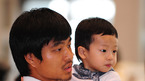 10일 상하이에서 벌어진 남아공 월드컵 아시아 최종예선 1차전서 북한과 아쉬운 무승부를 기록한 한국 대표팀이 11일 인천공항으로 입국했다. 최성국이 공항으로 마중나온 아들을 안고 인터뷰를 하고 있다./인천공항=손용호 기자spjj@osen.co.kr [Copyright ⓒ 한국 최고의 스포츠 엔터테인먼트 전문 미디어...