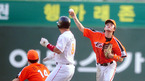 '2008 삼성 PAVV 프로야구' 선두를 독주하고 있는 SK 와이번스와 4위 삼성에 1.5게임을 뒤지고 있는 한화 이글스의 경기가 14일 민족 고유의 명절인 한가위에 인천 문학야구장에서 벌어졌다. 4회말 무사 박재홍이 동점 홈런을 치고 SK 볼견 미르와 하이파이브를 하고 있다./문학=손용호 기자spjj@osen.co.kr...