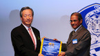 대한축구협회 창립 75주년을 맞아 창립 기념일 전날인 18일 저녁 소공동 롯데호텔 크리스탈볼룸에서 정몽준 축구협회장과 이누카이 모토아키 일본축구협회장, 피터 벨라판 전 아시아축구연맹 사무총장 등 국내외 축구계 인사가 참석한 가운데 전야제가 열렸다. 정몽준 축구협회장이 피터 벨라판 전 아시아축구연맹 사무총장으로부터 받은 기념 트로피를 열어보며 웃고...