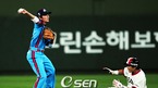 '2008 삼성 PAVV 프로야구' 롯데 자이언츠와 두산 베어스의 경기가 19일 부산 사직구장에서 벌어졌다. 1회초 1사 1루 두산 김현수의 내야땅볼 때 롯데 박기혁이 두산 이종욱을 포스아웃시키고 1루 송구하여 병살아웃을 만들고 있다./부산=윤민호 기자 ymh@osen.co.kr [Copyright ⓒ 한국 최고의 스포츠...