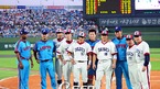 '2008 삼성 PAVV 프로야구' 롯데 자이언츠와 두산 베어스의 경기가 19일 부산 사직구장에서 벌어졌다.경기 전 김경문 감독과 로이스터 감독이 베이징 올림픽 야구 금메달 선수들과 기념촬영을 하고 있다./부산=윤민호 기자 ymh@osen.co.kr [Copyright ⓒ 한국 최고의 스포츠 엔터테인먼트 전문 미디어...