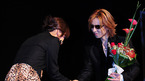 약 10년만에 재결합한 전설의 비주얼 록 그룹 엑스재팬(X JAPAN)의 리더 요시키의 영상회 및 기자회견이 19일 서울 태평로 프라자호텔 그랜드볼룸에서 열렸다. 요시키가 회견장으로 입장한 후 사회자인 채연에게 꽃다발을 받고 악수를 하고 있다./민경훈 기자 rumi@osen.co.kr [Copyright ⓒ 한국 최고의 스포츠 엔터테인먼트 전문...