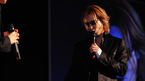 약 10년만에 재결합한 전설의 비주얼 록 그룹 엑스재팬(X JAPAN)의 리더 요시키의 영상회 및 기자회견이 19일 서울 태평로 프라자호텔 그랜드볼룸에서 열렸다. 요시키가 회견장으로 사회자 채연에게 귓속말을 하고 있다./민경훈 기자 rumi@osen.co.kr [Copyright ⓒ 한국 최고의 스포츠 엔터테인먼트 전문 미디어...