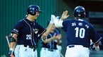 '2008 삼성 PAVV 프로야구' 롯데 자이언츠와 두산 베어스의 경기가 20일 사직구장에서 벌어졌다. 1회말 무사 롯데 김주찬 우월 동점 홈런을 날리고 이칠성 코치에게 환영 받고 있다./부산=윤민호 기자 ymh@osen.co.kr [Copyright ⓒ 한국 최고의 스포츠 엔터테인먼트 전문 미디어...