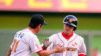 2008 삼성 PAVV 프로야구' SK 와이번스와 KIA 타이거즈의 경기가 21일 인천 문학야구장에서 벌어졌다. SK는 이 경기서 이기면 페넌트 레이스 우승을 확정짓는다. 4회말 무사 최정이 솔로홈런으로 선제점을 올리고 이광길 3루 주루코치의 환영을 받고 있다./문학=손용호 기자spjj@osen.co.kr [Copyright ⓒ 한국...