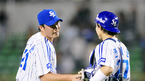 '2008 삼성 PAVV 프로야구' 삼성 라이온즈와 롯데 자이언츠 경기가 24일 대구구장에서 벌어졌다. 삼성이 롯데를 6연패로 몰아넣으며 8-5 승리를 거두었다.경기 종료후 마무리 호투를 펼친 삼성 오승환이 현재윤 포수와 승리의 기쁨을 나누고 있다./대구=김영민 기자ajyoung@osen.co.kr [Copyright ⓒ 한국...