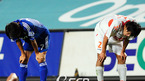 '삼성 하우젠 컵 2008' 수원 삼성과 경남 FC의 경기가 24일 수원 월드컵경기장에서 벌어졌다. 이 날 경기에서 수원이 경남에 2-1로 승리를 거두었다. 경기를 마치고 수원 안효연과 경남 김종훈이 그라운드 위에서 휴식을 취하고 있다./수원=민경훈 기자 rumi@osen.co.kr [Copyright ⓒ 한국 최고의 스포츠...