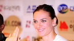 여자 장대높이뛰기 세계기록을 보유하고 있는 옐레나 이신바예바를 비롯한 32개국 136명의 선수들이 참가하는 '2008대구국제육상경기대회'를 하루 앞두고 24일 오후 대구 인터불고호텔에서 주요 선수들이 기자회견을 가졌다. 이신바예바가 월프레드 번게이, 리반 센즈, 로린 윌리엄스가 함께 가진 기자회견서 손을 들어 인사하고 있다./대구=김영민...