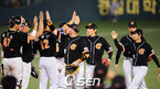 '2008 삼성 PAVV 프로야구' 삼성 라이온즈와 롯데 자이언츠 경기가 25일 대구구장에서 벌어졌다. 롯데가 4-1로 승리를 거두며 6연패에서 탈출했다. 경기 종료후 선수들이 승리의 기쁨을 나누고 있다./대구=김영민 기자ajyoung@osen.co.kr [Copyright ⓒ 한국 최고의 스포츠 엔터테인먼트 전문 미디어...