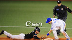 '2008 삼성 PAVV 프로야구' 두산 베어스와 히어로즈의 경기가 25일 잠실구장에서 벌어졌다. 7회말 1사 주자 1루 고영민 타석에서 1루 주자 이종욱이 폭투를 기회삼아 2루를 지나 3루로 도루를 시도하였으나 3루에서 아웃되고 있다./잠실=민경훈 기자rumi@osen.co.kr [Copyright ⓒ 한국 최고의 스포츠...