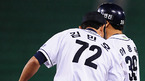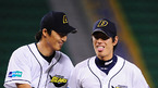 '2008 삼성 PAVV 프로야구' 두산 베어스와 히어로즈의 경기가 25일 잠실구장에서 벌어졌다. 4회초 1사 주자 1,3루 히어로즈 김일경이 타격을 병살로 처리하고 들어오는 두산 유격수 김재호를 두산 선발 김상현이 손을 잡으며 고마워 하고 있다./잠실=민경훈 기자rumi@osen.co.kr [Copyright ⓒ 한국 최고의...