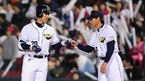 '2008 삼성 PAVV 프로야구' 두산 베어스와 삼성 라이온즈의 경기가 26일 잠실구장에서 벌어졌다. 3회말 2사 주자 2루 두산 김현수의 우중간 1타점 적시타때 홈을 밟은 고영민이 덕아웃에서 홍성흔과 하이파이브를 하고 있다./잠실=민경훈 기자rumi@osen.co.kr [Copyright ⓒ 한국 최고의 스포츠 엔터테인먼트 전문...