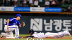 '2008 삼성 PAVV 프로야구' 두산 베어스와 삼성 라이온즈의 경기가 26일 잠실구장에서 벌어졌다. 2회말 1사 주자 1루 두산 유재웅의 우중간 안타때 1루 주자 최준석이 2루에 세이프, 땀을 닦고 있다./잠실=민경훈 기자rumi@osen.co.kr [Copyright ⓒ 한국 최고의 스포츠 엔터테인먼트 전문 미디어...