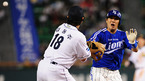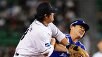 '2008 삼성 PAVV 프로야구' 두산 베어스와 삼성 라이온즈의 경기가 26일 잠실구장에서 벌어졌다. 4회초 1사 주자 1,2루 삼성 현재윤의 중견수 플라이 아웃직후 2루 주자 박진만이 3루로 뛰면서 두산 3루수 김동주와 충돌을 하고 있다./잠실=민경훈 기자rumi@osen.co.kr [Copyright ⓒ 한국 최고의 스포츠...
