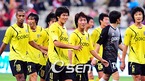 '삼성 하우젠컵 2008' 6강 플레이오프 부산 아이파크와 전남 드래곤즈의 경기가 1일 부산 아시아드 주경기장에서 벌어졌다. 3-0으로 승리를 거둔 지난해 챔피언 전남 선수들이 밝은 표정으로 그라운드를 나서고 있다./부산=윤민호 기자 ymh@osen.co.kr [Copyright ⓒ 한국 최고의 스포츠 엔터테인먼트 전문 미디어...
