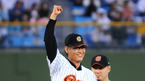 '2008 삼성 PAVV 프로야구 준플레이오프' 롯데 자이언츠와 삼성 라이언즈의 1차전이 8일 부산 사직야구장에서 열렸다. 전 롯데 감독 김용희가 시구를 한 후 주먹을 불끈 쥐고 있다./부산=손용호 기자spjj@osen.co.kr [Copyright ⓒ 한국 최고의 스포츠 엔터테인먼트 전문 미디어...