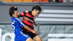 '삼성하우젠컵 2008 4강 플레이오프' 수원 삼성과 포항 스틸러스 경기가 8일 저녁 수원월드컵경기장에서 벌어졌다. 전반 포항 김재성과 수원 문민귀가 볼다툼을 벌이고 있다./수원=김영민 기자ajyoung@osen.co.kr [Copyright ⓒ 한국 최고의 스포츠 엔터테인먼트 전문 미디어 OSEN(www.osen.co.kr) 무단전재...