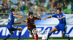 '삼성하우젠컵 2008 4강 플레이오프' 수원 삼성과 포항 스틸러스 경기가 8일 저녁 수원월드컵경기장에서 벌어졌다. 전반 포항 황진성이 수원 문민귀 최성환 사이로 돌파를 노리고 있다./수원=김영민 기자ajyoung@osen.co.kr [Copyright ⓒ 한국 최고의 스포츠 엔터테인먼트 전문 미디어...