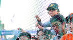 '2008 삼성 PAVV 프로야구 준플레이오프' 롯데 자이언츠와 삼성 라이언즈의 2차전이 9일 부산 사직야구장에서 열렸다.경기 전 선발투수 손민한이 나와서 몸을 풀자 팬들이 그물 사이로 사진을 찍고 있다./부산=손용호 기자spjj@osen.co.kr [Copyright ⓒ 한국 최고의 스포츠 엔터테인먼트 전문 미디어...