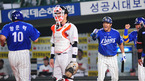 '2008 삼성 PAVV 프로야구 준플레이오프' 롯데 자이언츠와 삼성 라이온즈의 2차전이 9일 부산 사직야구장에서 열렸다.7회말 박종윤 타석때 마운드에 올라 박종윤의 대타 김민성을 삼진으로 처리한 후 마운드를 내려가고 있다. /부산=손용호 기자spjj@osen.co.kr [Copyright ⓒ 한국 최고의 스포츠 엔터테인먼트...