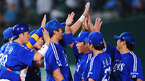 '2008 삼성 PAVV 프로야구 준플레이오프' 롯데 자이언츠와 삼성 라이온즈의 2차전이 9일 부산 사직야구장에서 벌어져 삼성이 4-3으로 승리 2연승을 거두며 플레이오프 진출에 한경기를 남겨두었다. 선수들이 마운드에 모여 승리의 기쁨을 나누고 있다./부산=손용호 기자spjj@osen.co.kr [Copyright ⓒ 한국...