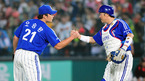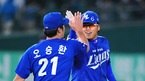 '2008 삼성 PAVV 프로야구 준플레이오프' 롯데 자이언츠와 삼성 라이온즈의 2차전이 9일 부산 사직야구장에서 벌어져 삼성이 4-3으로 승리 2연승을 거두며 플레이오프 진출에 한경기를 남겨두었다. 양준혁이 승리타점을 기록한 박진만을 반갑게 맞이하고 있다./부산=손용호 기자spjj@osen.co.kr [Copyright ⓒ...