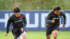 축구대표팀이 오는 15일 아랍에미리트연합과 2010 남아프리카공화국 월드컵축구 아시아지역 최종예선 2차전을 앞두고 10일 파주 NFC에서 오후 훈련을 가졌다. 이근호 이영표가 훈련 중 웃음을 지어보이고 있다./파주=김영민 기자ajyoung@osen.co.kr [Copyright ⓒ 한국 최고의 스포츠 엔터테인먼트 전문 미디어...