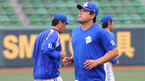 '2008 삼성 PAVV 프로야구' 준플레이오프 경기 롯데와의 원정 경기서 두경기를 모두 승리하고 돌아온 삼성 라이온즈 선수들이 10일 비가 내리는 가운데 대구 야구장에서 가벼운 운동으로 몸을 풀었다. 박진만이 밝은 표정으로 훈련을 하고 있다./대구=손용호 기자spjj@osen.co.kr [Copyright ⓒ 한국 최고의...