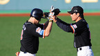 '2008 삼성 PAVV 프로야구 준플레이오프' 삼성 라이온즈와 롯데 자이언츠의 3차전이 11일 대구구장에서 벌어졌다. 5회초 무사주자 2루 롯데 이인구가 우중간 1타점 역전 적시타를 날린 후 2루 앞에서 공필성 코치와 하이파이브를 하고 있다./대구=민경훈 기자rumi@osen.co.kr [Copyright ⓒ 한국 최고의 스포츠...