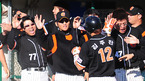 '2008 삼성 PAVV 프로야구 준플레이오프' 삼성 라이온즈와 롯데 자이언츠의 3차전이 11일 대구구장에서 벌어졌다. 5회초 무사주자 2루 롯데 이인구의 우중간 1타점 역전 적시타로 홈을 밟은 김주찬이 덕아웃에서 동료들과 기쁨을 나누고 있다./대구=민경훈 기자rumi@osen.co.kr [Copyright ⓒ 한국 최고의 스포츠...