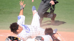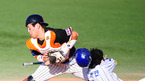 '2008 삼성 PAVV 프로야구 준플레이오프' 삼성 라이온즈와 롯데 자이언츠의 3차전이 11일 대구구장에서 벌어졌다. 4회말 1사 만루 최형우의 우익수 플라이때 홈으로 쇄도한 3루주자 박석민이 홈 베이스를 터치 못하고 있다. 박석민은 이내 홈 베이스를 터치 득점을 올렸다./대구=손용호 기자spjj@osen.co.kr...