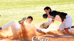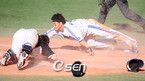 '2008 삼성 PAVV 프로야구 준플레이오프' 삼성 라이온즈와 롯데 자이언츠의 3차전이 11일 대구구장에서 벌어졌다. 4회말 1사 주자 만루 삼성 최형우의 우익수 희생플라이 아웃때 3루 주자 박석민이 홈으로 쇄도 롯데 강민호 포수와 충돌, 세이프 되고 있다./대구=민경훈 기자rumi@osen.co.kr [Copyright ⓒ 한국...