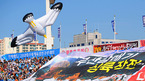 '2008 삼성 PAVV 프로야구 준플레이오프' 삼성 라이온즈와 롯데 자이언츠의 3차전이 11일 대구구장에서 벌어졌다. 롯데 응원단이 대형 현수막을 이용해서 응원을 펼치고 있다./대구=민경훈 기자rumi@osen.co.kr [Copyright ⓒ 한국 최고의 스포츠 엔터테인먼트 전문 미디어 OSEN(www.osen.co.kr)...